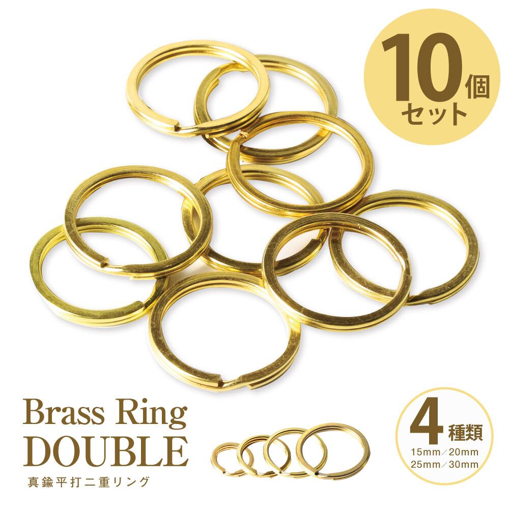 【25mm】真鍮 光沢仕上げ 二重リング 10個入 セット まとめて 平 金色 ゴールド Brass ダブルリング キーホルダー キーリング カラビナ カスタムパーツ レザークラフト 鍵 ハンドメイド DIY ヴィンテージ アメカジ アウトドア
