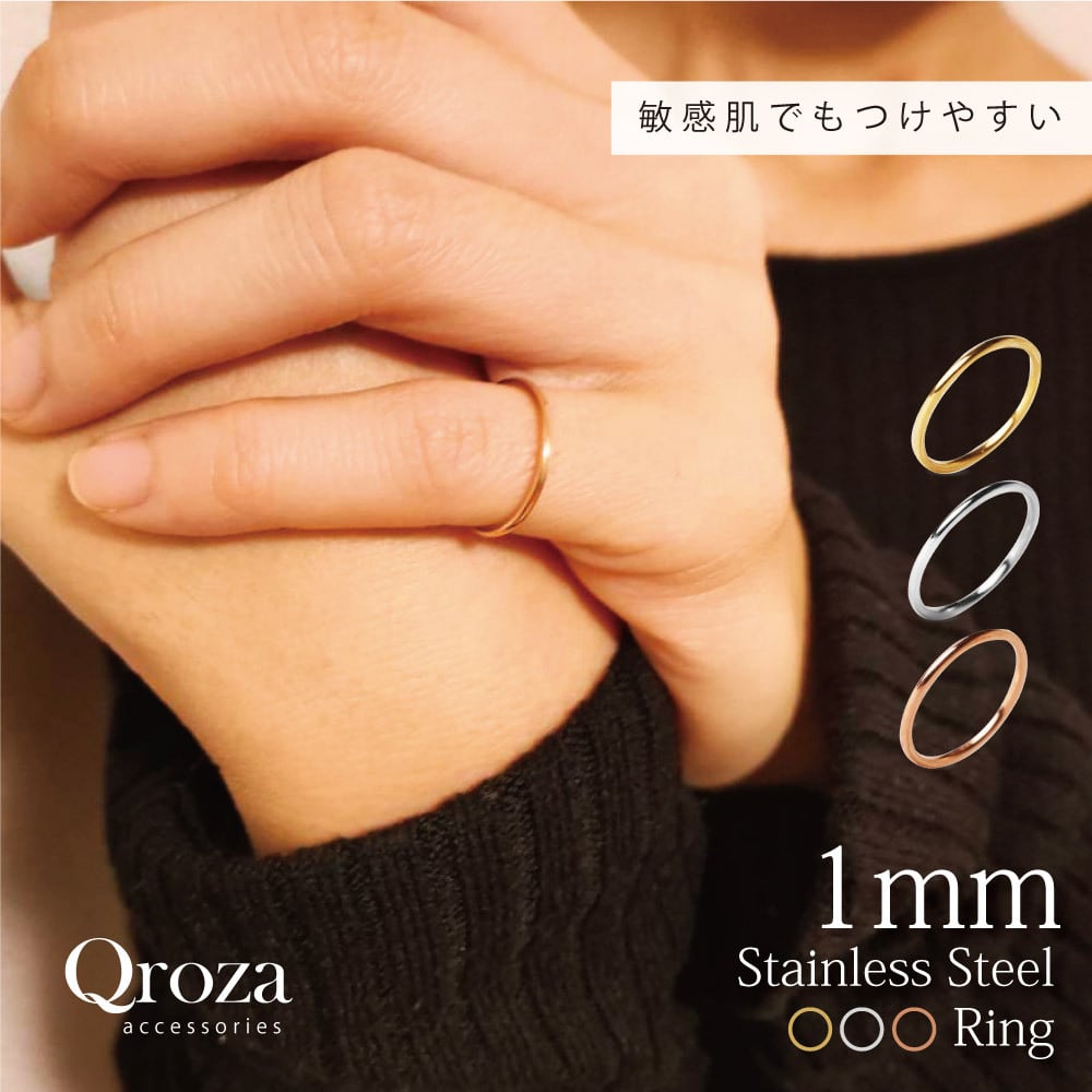 Qroza クローザ 極細 細め 細身 華奢 1mm サージカルステンレス ポーチ付 指輪 外甲丸 リング メンズ レディース カップル シンプル プレゼント ピンキーリング ペアリング 重ね付け シンプル 韓国 アクセサリー ミニマリスト ストッパーリング【送料無料】