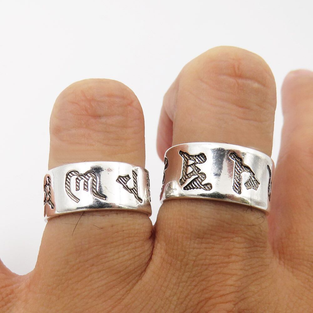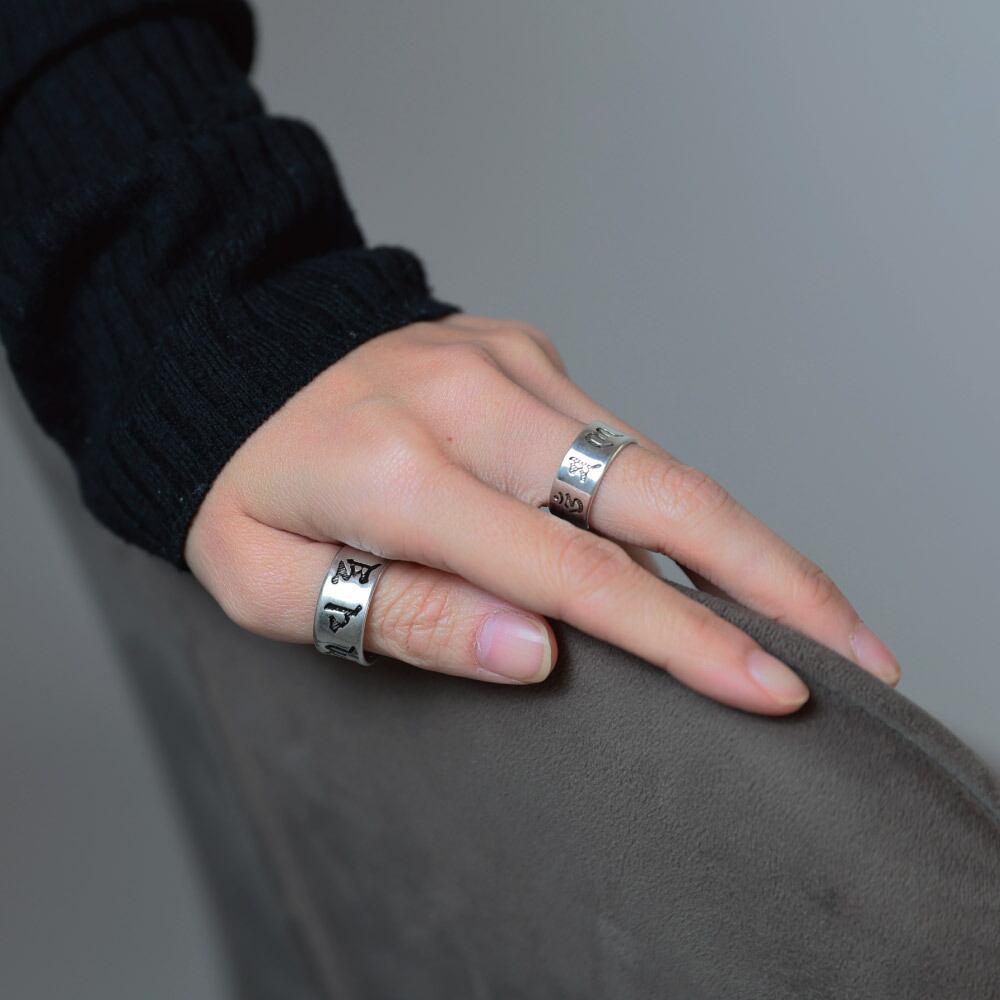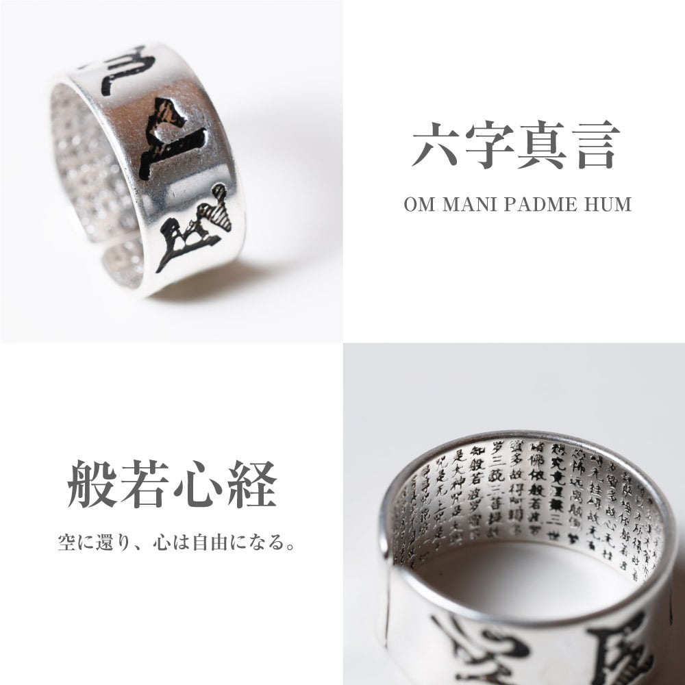 【Qroza】ペアリング 指輪 999刻印 般若心経 全文 六字真言 リング 指輪 フリーサイズ シルバー 2つ セット