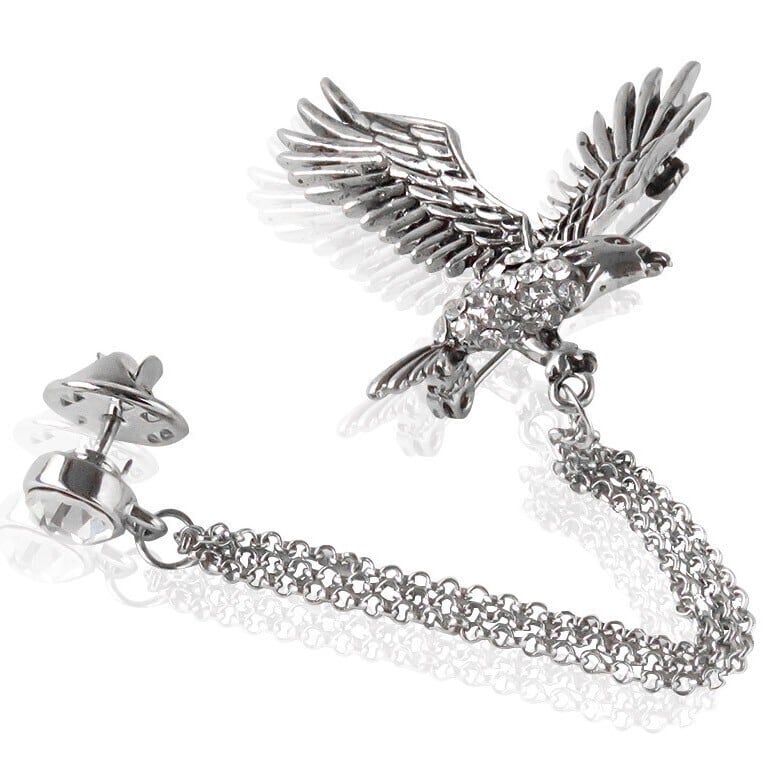 【Qroza】ラペルピン イーグルデザイン ラインストーン ブローチ タイニーピン メンズ レディース ブローチ ピン シルバー ギフト プレゼント 人気 おしゃれ