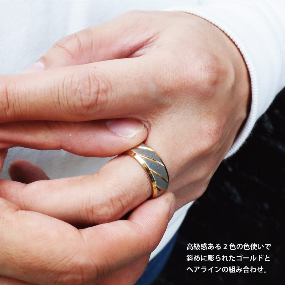 【Qroza】指輪 メンズ リング レジメンタルストライプ ヘアライン 傷軽減 サージカルステンレス ゴールド メンズ アクセサリ ジュエリー プレゼント 重厚 高級感 シンプル カジュアル 誕生日 記念日 父の日 イベント シンプル 記念日 ファッション キラキラ ring りんぐ | クローザザッカ