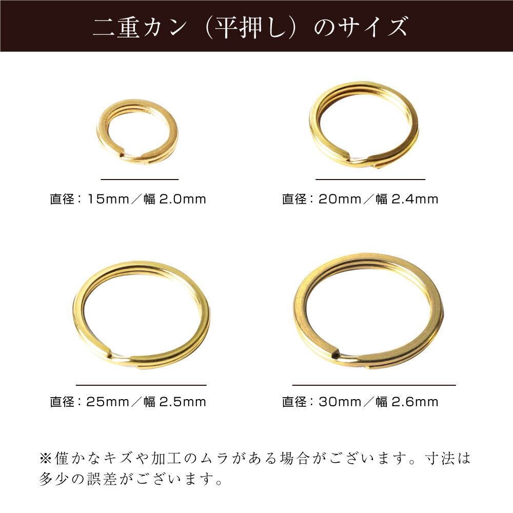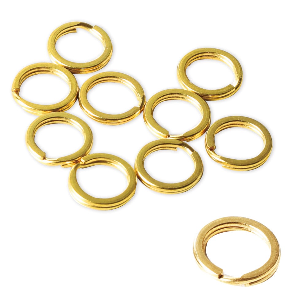 【15mm】真鍮 光沢仕上げ 二重リング 10個入 セット まとめて 平 金色 ゴールド Brass ダブルリング キーホルダー キーリング カラビナ カスタムパーツ レザークラフト 鍵 ハンドメイド DIY ヴィンテージ アメカジ アウトドア